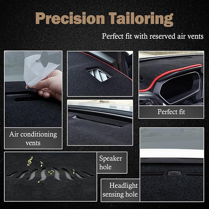 - ๐๐๐ใCustomized Designใ- Laser cutting, customized car mold opening, perfect fit, and the fine stitching is suitable for the arc of the original car. All defrost and AC vents are pre-cut. The back of dashboard cover mat is made of non-slip silicone particles, also equipped with Velcro, which further strengthens the fixing.