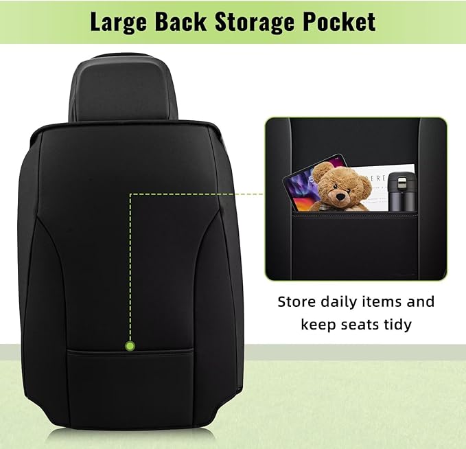 - š„°šćSafety CompatibilityćThe front two seat covers are 360°all-inclusive design, and the sides are covered with elastic cloth. The front seat cover is sewn with a single thread, which does not affect the opening of the side airbags and the use of seat belts in emergencies, and reserved slots for seat belts, and is also compatible with child safety seats