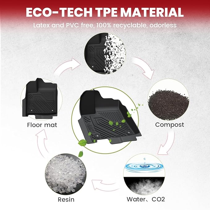 - Premium TPE Material : LASFIT floor liners made of 100% brand new TPE material (Thermoplastic Elastomer) for a comfortable and soft touch and exquisite finish. More friendly to the elderly, children and pets. Exclusively designed anti-slip studs for more safety and shock and sound absorbent.