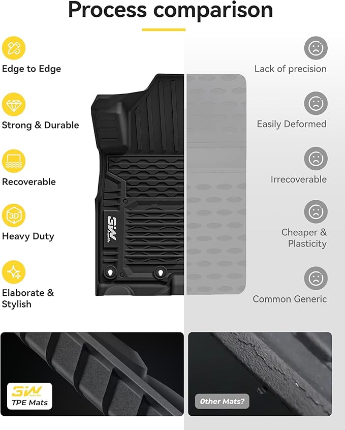 - ODORLESS AND NON-TOXIC: The floor liners are made with non-toxic and odorless TPE material. No foul smell will be produced even in high temperature. Bring you and your families a safer and more comfortable interior car environment.