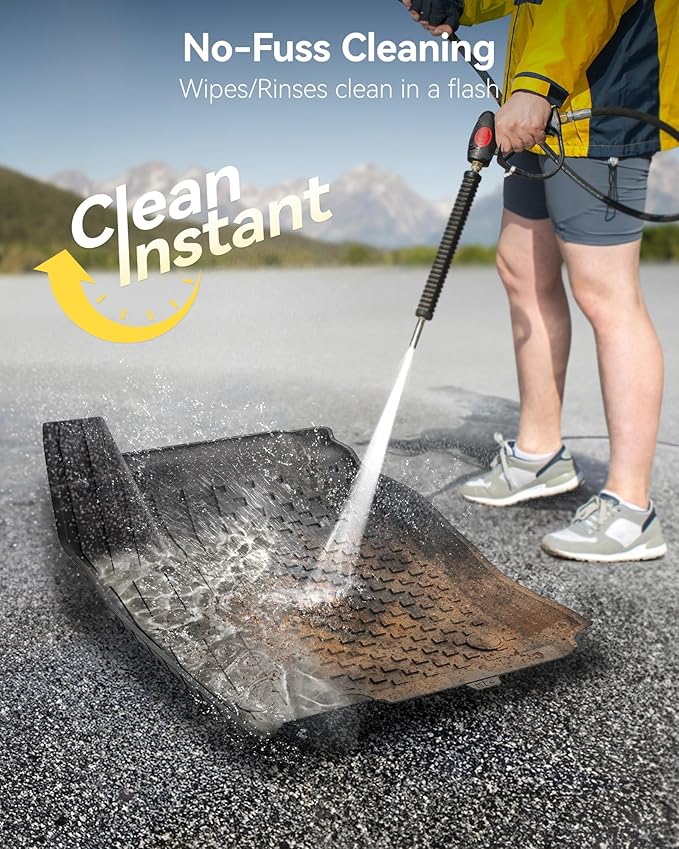 - EASY TO CLEAN & INSTALL: Our floor liners are easy to clean. No matter with dust, dirt or sand on the mats, just take several minutes wash off it with water or damp towel.Whether removing or installing, just snap the original clips together to securely hold it in place.Save your time and money.
