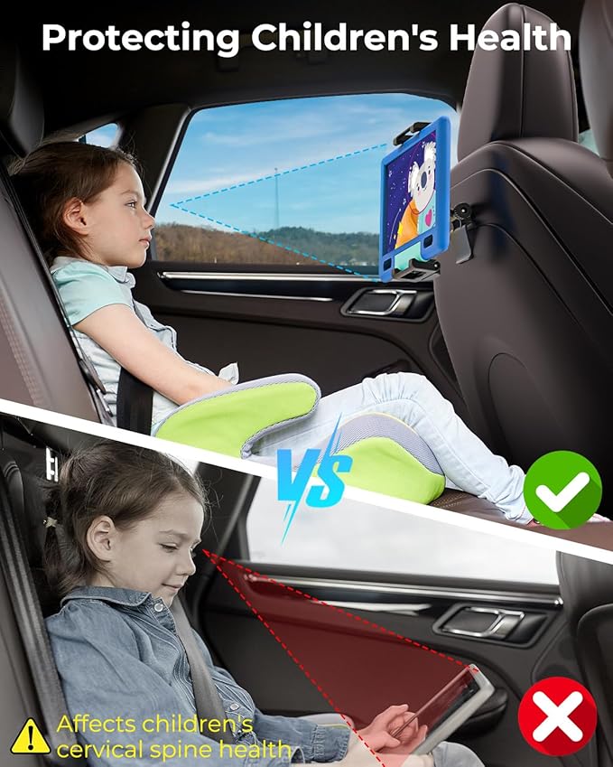 - 【360° Full Rotation】Heavy-duty aluminum alloy joints provide 360° flexibility to accommodate passenger height, seating position, and ensure proper viewing posture. Lock settings securely with the anti-slip knob, guaranteeing stability even on bumpy roads.