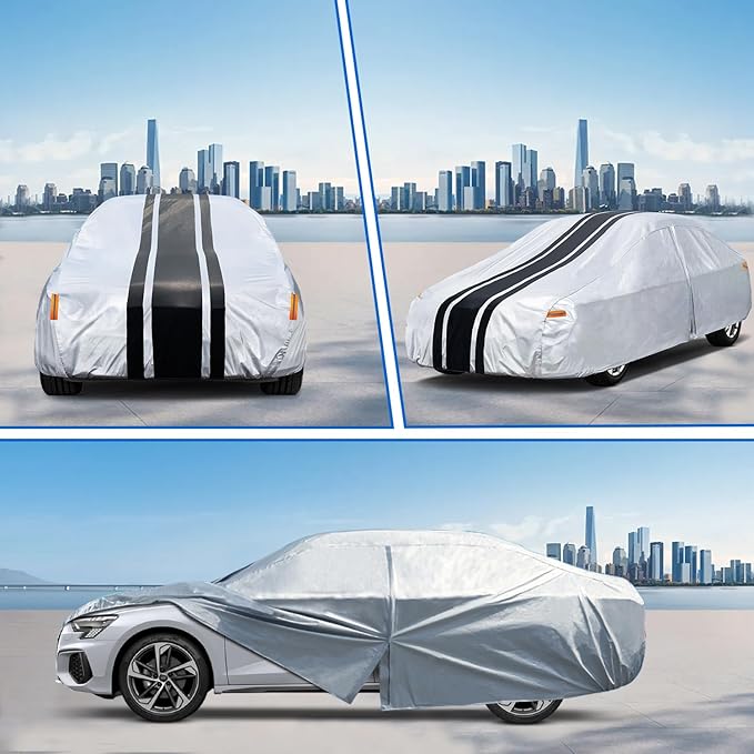 - 【Heavy-Duty Materials】Cotryvox car covers are constructed from heavy-duty materials. The outer layer of PE provides 100% waterproofing, while an aluminum membrane in between extends the cover's lifespan. This makes it an excellent choice for long-term use.