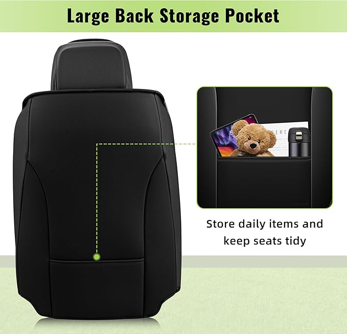 - ⚡Practical and Simple: There are storage pockets at the back of the front seat covers for miscellaneous items. The three-dimensional cutouts are tailored to enhance the sense of class in the car. Comfortable and soft leather allows you to have a more comfortable experience on family outings and outdoor trips.