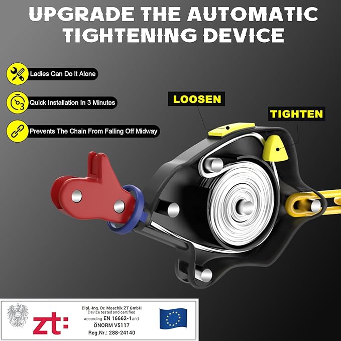 - Auto-Tightening Design for Worry-Free Driving: Click and go! These car chains automatically tighten during driving, requiring no rubber tighteners or readjustment. Enjoy smoother, safer winter driving without the need to stop and retighten.