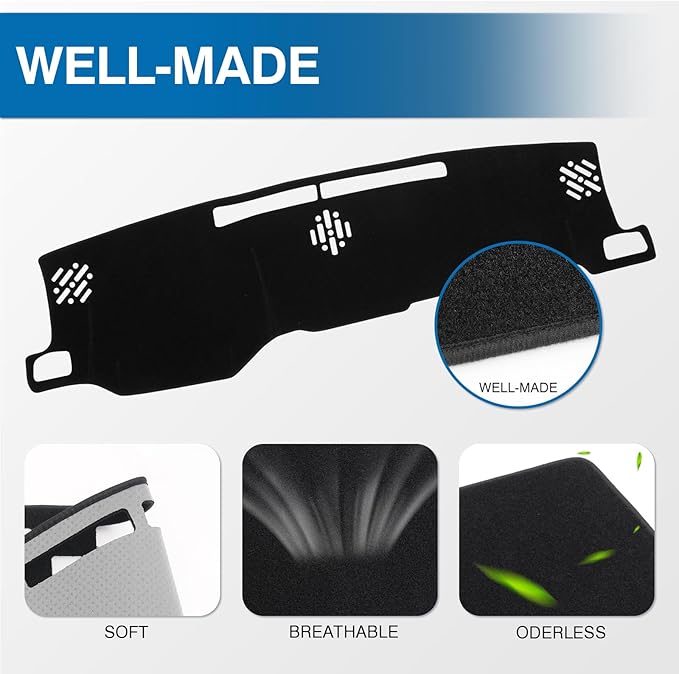 - [Premium Material] Our center console dash cover for Toyota Tacoma made of rich quality polyester. Soft, breathable and odorless. Not easy to wrinkle. All edges of the car sunshade mat are carefully hemmed and stitched, making the cover comfortable to touch. Its surface is not completely smooth, so items will not fall off.