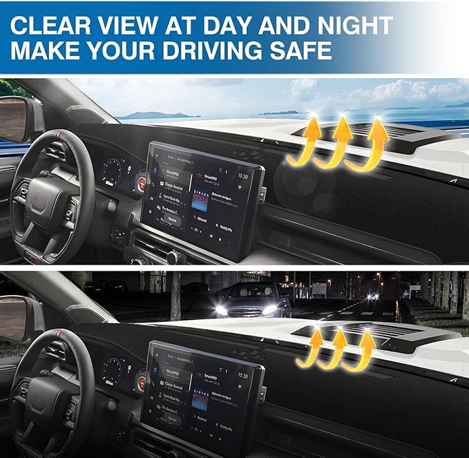 - [Super Protection] Our high quality dash vent covers which is light and soft and resistant to distorting, fading, and wrinkles. Protects the dashboard surface from UV rays. It hides the damage already done on your dashboard. Also helps reduce dangerous windshield glare, making driving more comfortable and safer.