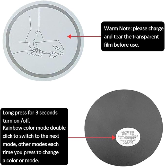 - Easy to Use: The led car coasters is made of quality acrylic material, there is a button on the back, long press to turn on/off, rainbow color mode double click to switch to the next mode, other modes each time you press to change a color or mode