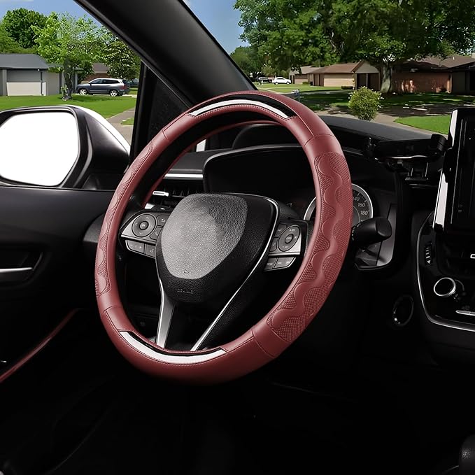 - Premium Craftsmanship: Crafted from high-quality microfiber leather with a soft, durable texture that resists wear, ensuring long-lasting protection for your steering wheel.