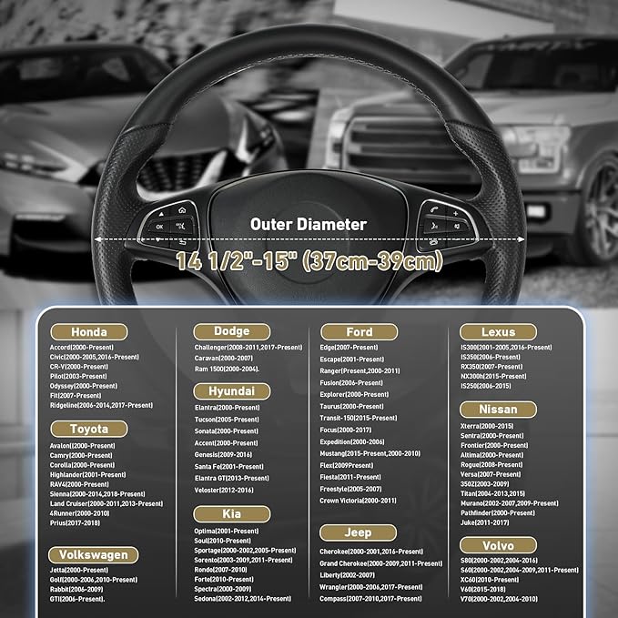 - Universal Fit & Easy Installation: Fits most standard steering wheels (14.5–15 inches in outer diameter). Simply stretch and slide it on—no tools required for quick installation.