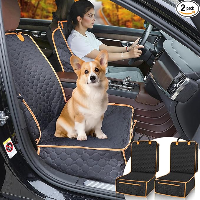2 Packs Front Seat Car Cover, Waterproof Dog Car Seat Cover, Non-slip & Scratch-Proof, Pet Car Seat Protector with Side Flaps and Storage Pocket, Car Seat Cover for Most Cars, Trucks and SUVs