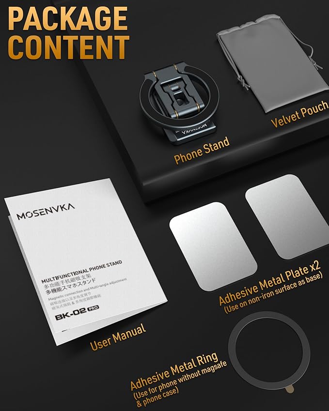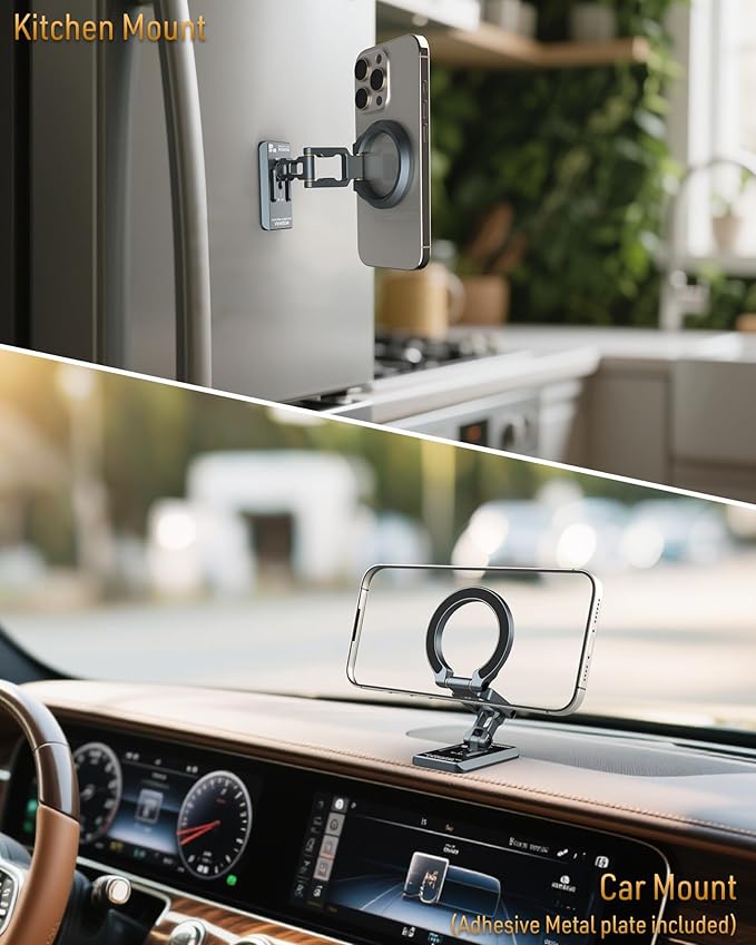 - 【Revolutionary Dual-Sided Magnetic Stand】Features extra-strong 4x N52 magnets on the base for secure attachment to ANY ferrous surface (car dash, fridge, gym equipment,golf cart,metal walls). Includes steel plates to instantly create a magnetic surface on non-mag-safe phone&case or non-metal materials . Tip: Allow 24 hours for adhesive to cure before using with the steel plate.