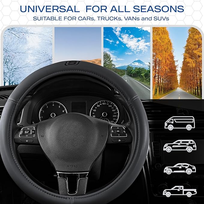 - COMFORT GRIP & ERGONOMIC DESIGN -The ergonomic design and comfort grip make this steering wheel cover perfect for long drives. The Memory Foam material provides gentle yet firm support, helping to reduce hand fatigue and improve your overall driving experience.