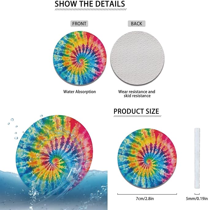 Tie Dye Car Accessories for Women Fashion Hippie Steering Wheel Cover Car Handbrake Cover,Cup Mat 6 Pcs Auto Interior Decor Suit for Vans Truck SUV
