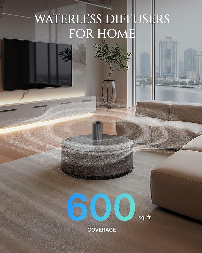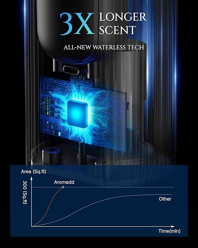 - ADVANCED COLD AIR DIFFUSER TECHNOLOGY: Enjoy fast, even natural scent diffusion—no water or heat required. Aromadd diffuser atomizes essential oils into ultra-fine particles using filtered cold air and pressurized airflow. Our scent diffuser releases 3X purer fragrance than traditional ultrasonic diffusers, ensuring a more intense and authentic aroma experience. This waterless essential oil diffuser covers up to 600 sq.ft—whether in your home, office, or car, you can enjoy a continuous fragrance experience at all times