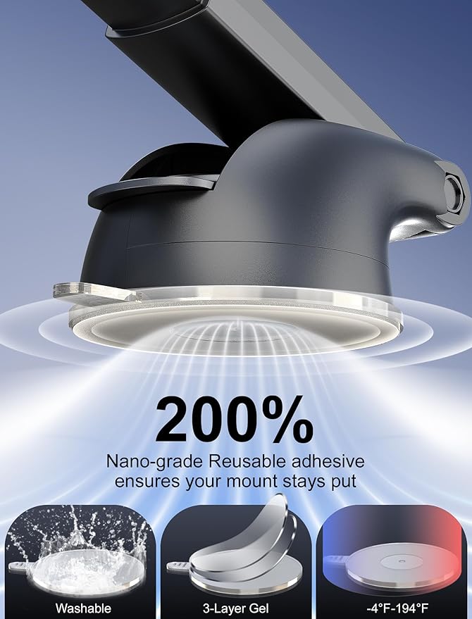 - Double Strong Suction: The pop socket car mount base is made of high viscosity nano-gel, combined with enhanced suction buttons to apply pressure to hold it in place. Whether it's a high or low temperature environment, it can be firmly adsorbed on smooth surfaces such as dashboards, windshields, etc., without worrying about the gel melting or residual adhesive marks. And the suction pad can also be washed with water to restore its adhesion for reuse, providing stable support for you phone.