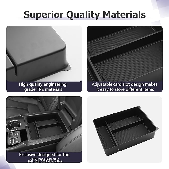 - Customized Size β The 2026 Passport center console organizer has a specially customized size, which is very suitable for 2023 2024 2025 Pilot & 2024 2025 Ridgeline & 2024 2025 2026 Passport RTL/RTL Towing/RTL Blackout/TrailSport/TrailSport Blackout/TrailSport Elite/TrailSport Elite Blackout trim interior accessories, absolute necessities of automobiles and fashion items. 2026 Passport accessories with multiple compartments to meet your needs for storing various items