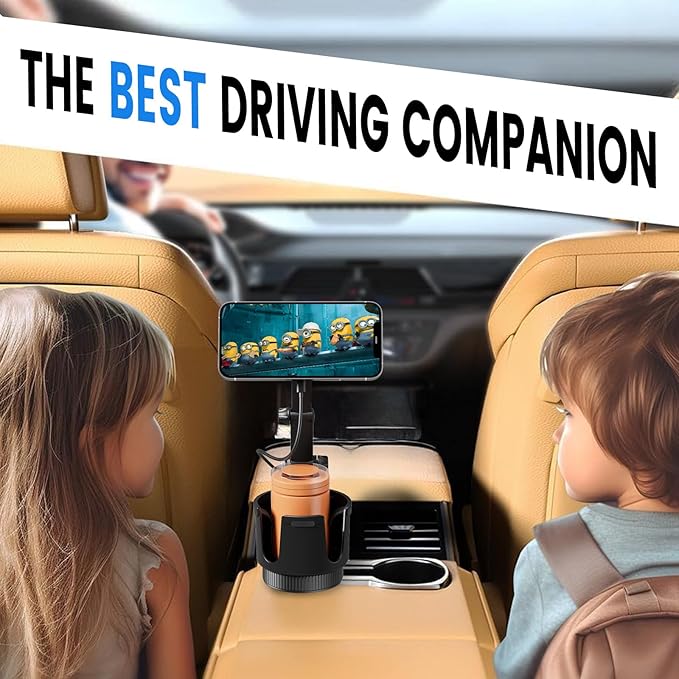 - 【Large Cup Base – Family & Road Trip Ready】The expandable base fits most vehicle cup holders and is designed to hold large water bottles or tumblers alongside your phone. Perfect for road trips, family vehicles, or parents traveling with kids, this cup holder phone mount with magsafe charger keeps essentials organized and phones charged.