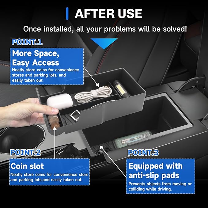- Easy Maintenance: The 2025 Equinox armrest console organizer includes dust-proof black mats that prevent sliding and are easy to clean. Removable mats ensure a tidy and hygienic storage space for your belongings