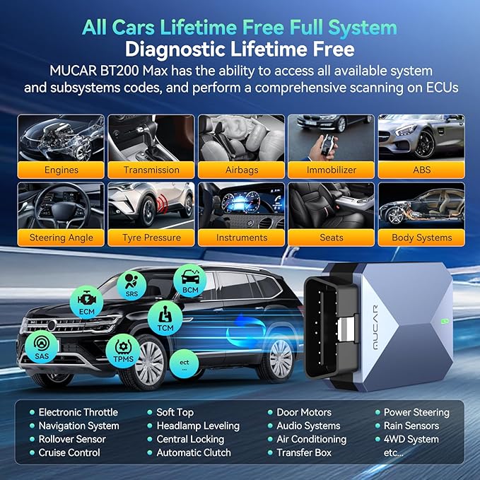 - Supports 15 Maintenance Functions: Over 15 maintenance resets: Supports oil reset, tire pressure monitoring system (TPMS) reset, battery management system (BMS) reset, transmission relearn, throttle learn, SAS reset, and many more specialized functions within the system diagnostics menu. These functions help car owners easily perform necessary maintenance and care, ensuring your vehicle maintains optimal condition, extending its lifespan, and preventing common issues and failures. Please note that this is a limited availability issue; not all maintenance functions are supported on all vehicles.