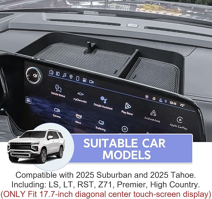 - Seamless Fit -- RUNROAD dashboard storage organizer tray compatible with 2025 Suburban and 2025 Tahoe. Including: LS, LT, RST, Z71, Premier, High Country. ( Only Fit 17.7-inch center display )