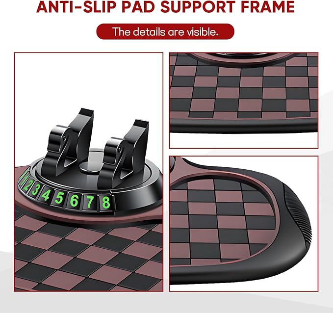 Wuyaoyao Multifunction Car Anti-Slip Mat Auto Phone Holder, PVC Car Dashboard Non-Slip Pad Phone Mount with Temporary Parking Number, Automotive Sticky Dash Pad for Phones, Keys, Gadgets (Black+Brown)
