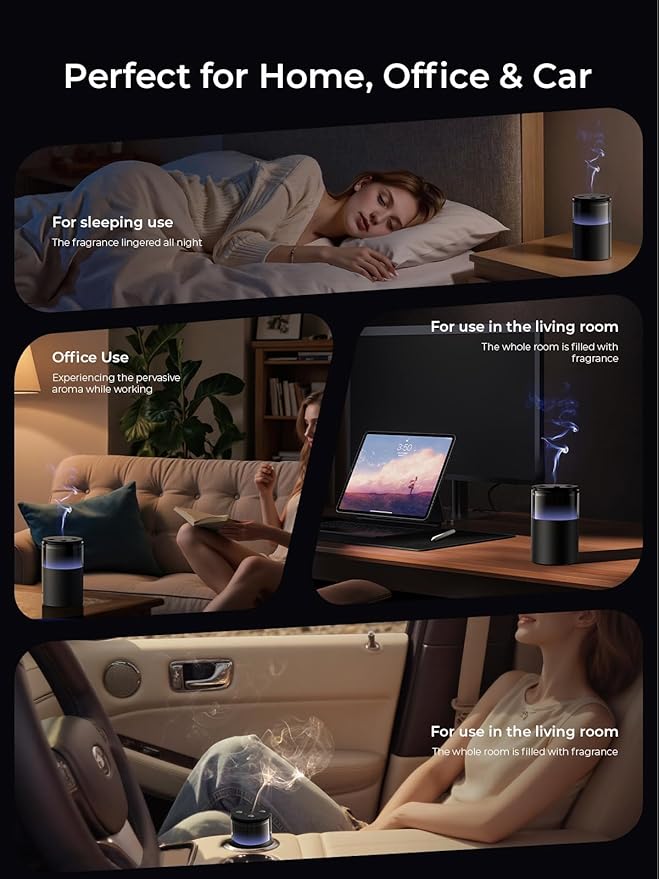 - Waterless Diffuser Game-Changer: The diffuser uses cold nano-mist tech to zap oils into superfine fog instantly—zero heat, zero H2O. Keeps oils 100% legit,Long lasting aroma! Covers 500 sq ft library-quiet (<25dB). Ideal for sleep, yoga, zen time, or spa vibes. Way better than regular diffusers for home—no contest!