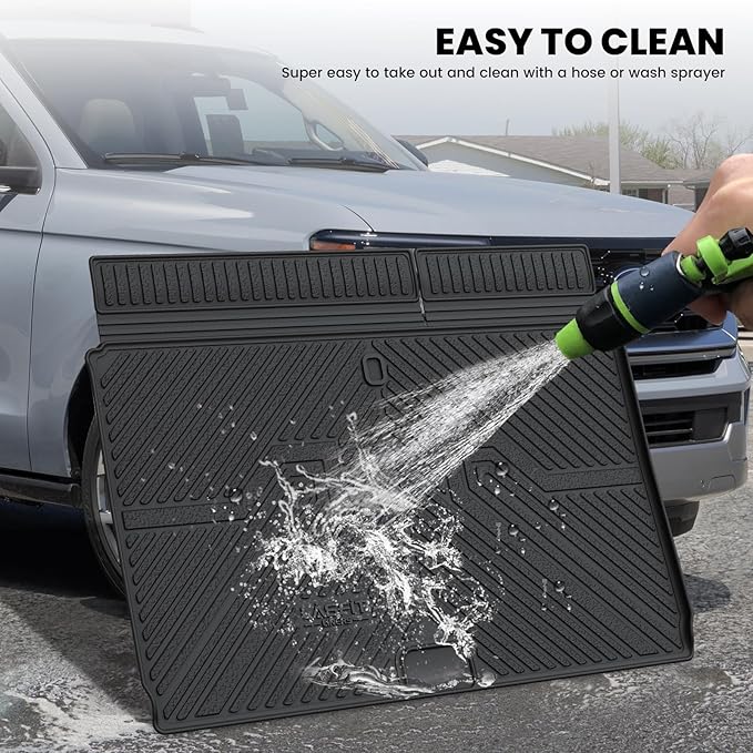 - 【Easy Installation & Cleaning】Ready to use out of the box, achieves precise fit with Ford Expedition Max & Lincoln Navigator L 7 seats 2025 2026 (Not fit 8 seats) models in seconds. Specifically designed trunk mat effortlessly organizes various in-car debris (liquid spills/food crumbs/pet hair/sand dust). Features a simple 3-step cleaning method after removal: 1) Shake off or sweep away large particles → 2) Rinse and air-dry → 3) Quick repositioning. Compatible with vacuum cleaning or high-pressure hose rinse, offering instant drying and immediate reuse.