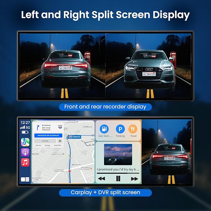 - ⭐【Loop Recording & Mirror Link】The wireless car screen supports loop recording, ensuring continuous capture of new footage. With a huge 64GB of storage space, guaranteeing that no crucial moments are missed.The wireless CarPlay screen supports wireless mirroring for both Android and iOS devices. Use Mirror Link to display your smartphone screen on the 11.5 inch wireless CarPlay, giving you access to apps, media, and more while driving.