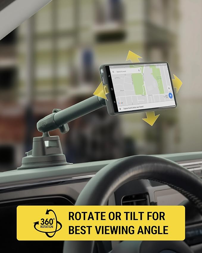 - Strong Suction Cup Base: Keep your phone or tablet securely in place through sharp turns, sudden stops, and rough roads. This suction cup phone mount includes a 3.72" StickGrip pad that creates a reliable base—adhering firmly to a smooth windshield or textured dashboard in any car or truck