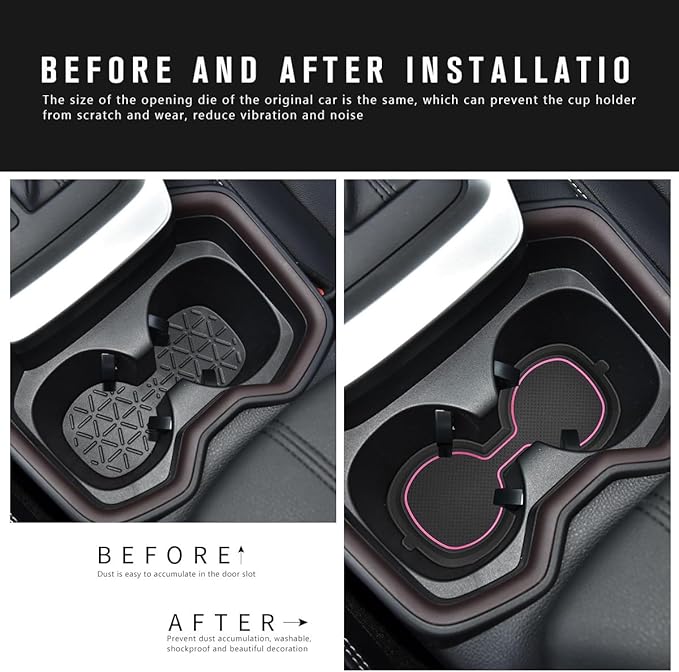 - 【DECORATE YOUR CAR】Color: Pink Trim. 3D Cup Holder Inserts for Toyota RAV4 Accessories 2019-2025 give a new look to your vehicle interior with these cup holder inserts on. Adds a nice pop of color. Great way to keep car clean. Protect your car cup holders from dirt and scratches. It will reduce rattling sound caused by small things like keychain or coins while driving.