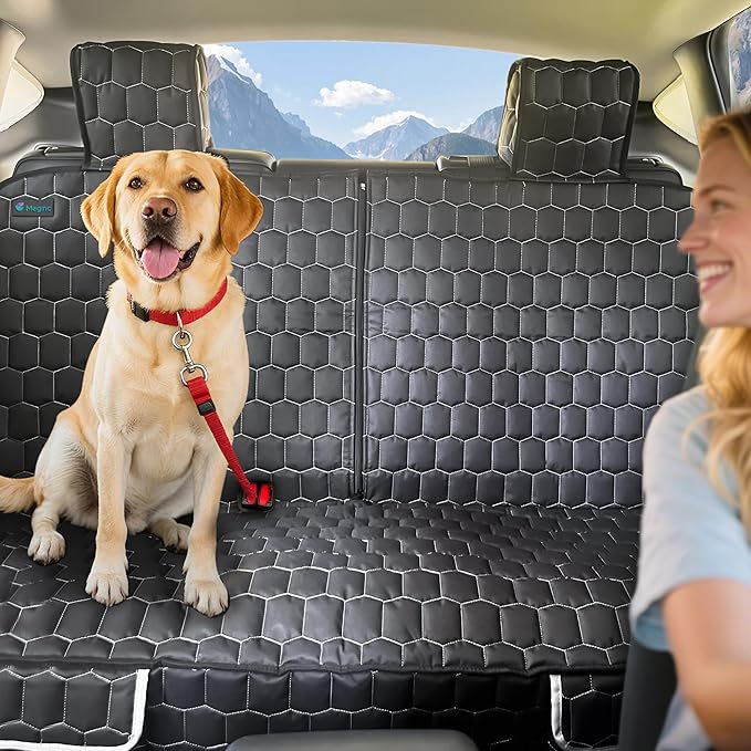- Protects Your Back Seat: Made of heavy-duty 600D Oxford fabric with a 120g cotton layer and a waterproof PVC backing, The dog seat cover for back seat is durable and resistant to water, scratches, and dirt. It effectively protects your car seat from dog hair, drool, claws, as well as kids’ snacks, juice spills, and mud—keeping your back seat clean and damage-free