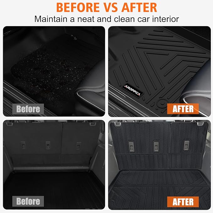 - EASY TO CLEAN: The custom floor liners & cargo mat are waterproof, stain-resistant, and easy to clean. Clean easily with a damp towel, or remove them from the car and rinse with water. Quick and easy to get your car floor mats looking nice and new again