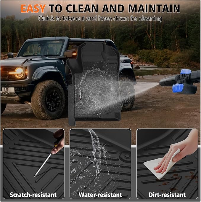 - ALL WEATHER PROTECTION: The car mats for 2021- 2025 Ford Bronco 4 Door design high edge to protect against dust, mud, salt, rain, snow and sand,etc. You don’t have to worry about the mats deforming, curling or unpleasant odor. Providing comfortable protection for your vehicle in any season