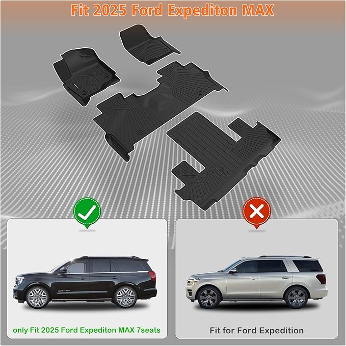 - ALL WEATHER PROTECTION: The car mats for 2025 Ford Expedition Max 7-Seater design high edge to protect against dust, mud, salt, rain, snow and sand,etc. You don’t have to worry about the mats deforming, curling or unpleasant odor. Providing comfortable protection for your vehicle in any season