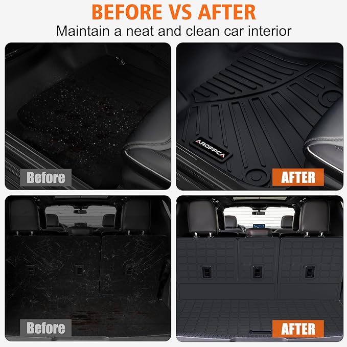 - FIT PERFECT: Adopt advanced 3D screening technology to capture every corner and crevice that it fits edge to edge and offers largest coverage. Aroppca floor mats and cargo liner with backrest mat compatible with 2025 Ford Expedition Max 7-Seater. No need trimming