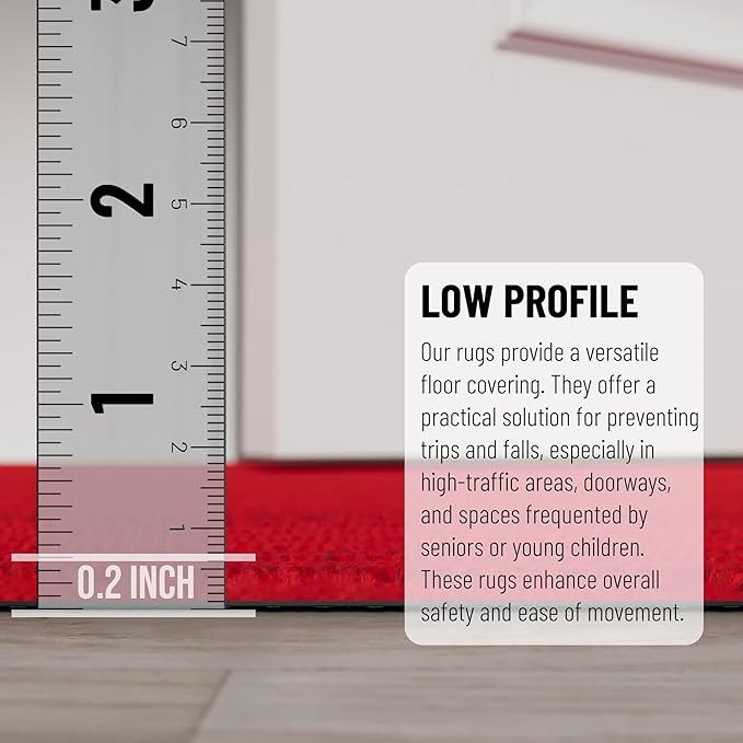 - Enhanced Durability with Scrape Rib Pile Texture: Made from strong, wear-resistant polyester featuring a scrape rib pile that traps dirt and debris on the surface for easier cleaning while providing excellent durability. The slim build lays flat—prevents curling or bunching and fits easily under doors and furniture.