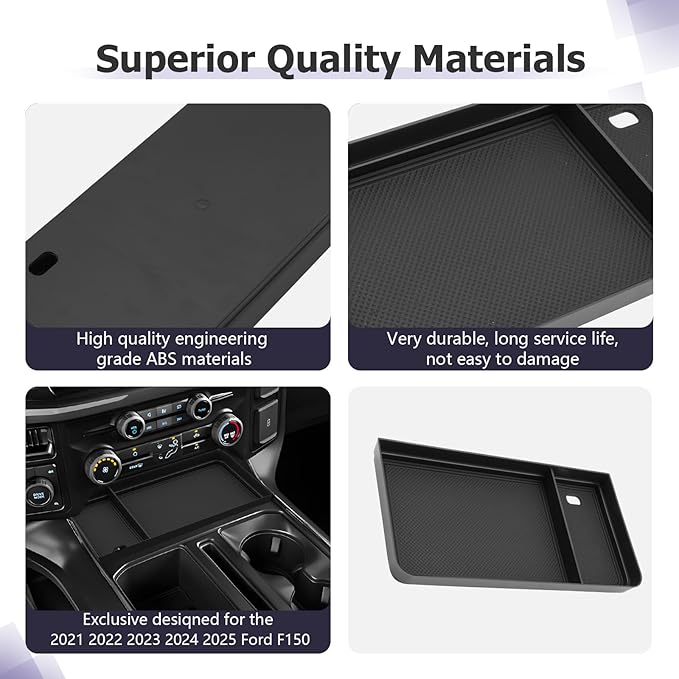 - High-quality Material β This 2025 F150 accessories,F 150 accessories 2025,2025 F150 armrest storage box is made of ABS plastic. 2025 F150 center console organizer is very strong and can be a good independent armrest box while you are driving. F-150 accessories 2025 is also moisture-proof and resistant. Corrosion and durability