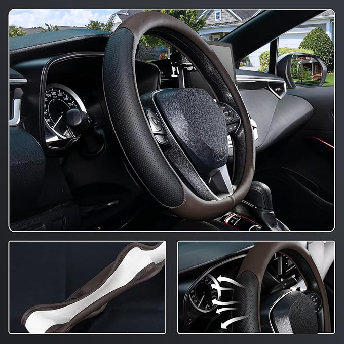 - Effortless Installation: Warm up the steering cover for munites, and slip it on your steering wheel. Installation is fairly easy, any adult can easily install this steering wheel cover.