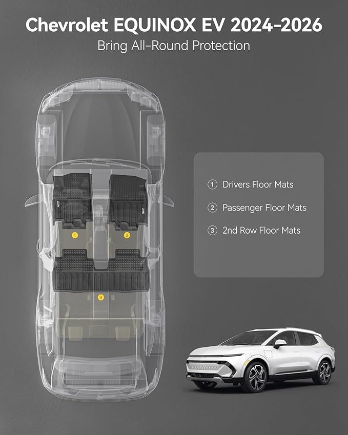 - PERFECT FIT FOR 2024-2026 CHEVY EQUINOX EV: Custom fit design edge to edge for maximum coverage and protection with TPE (thermoplastic elastomer) material which ensures your more strength, resilience, durability and elasticity, these floor mats are matchable with chevy equinox EV.