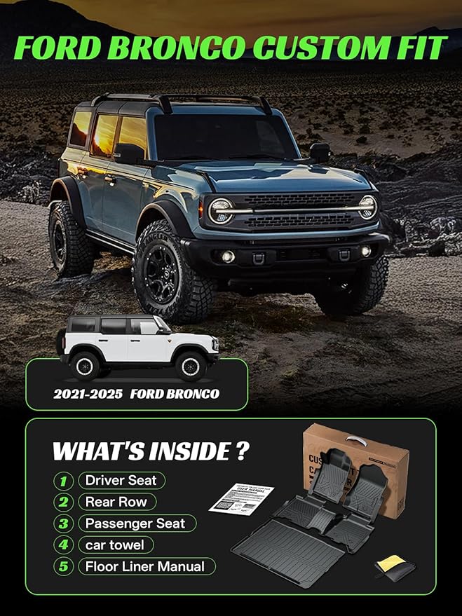 - Material Thermoplastic Elastomer (TPE) : Vehicle Service Type Ford Bronco 2021-2024
