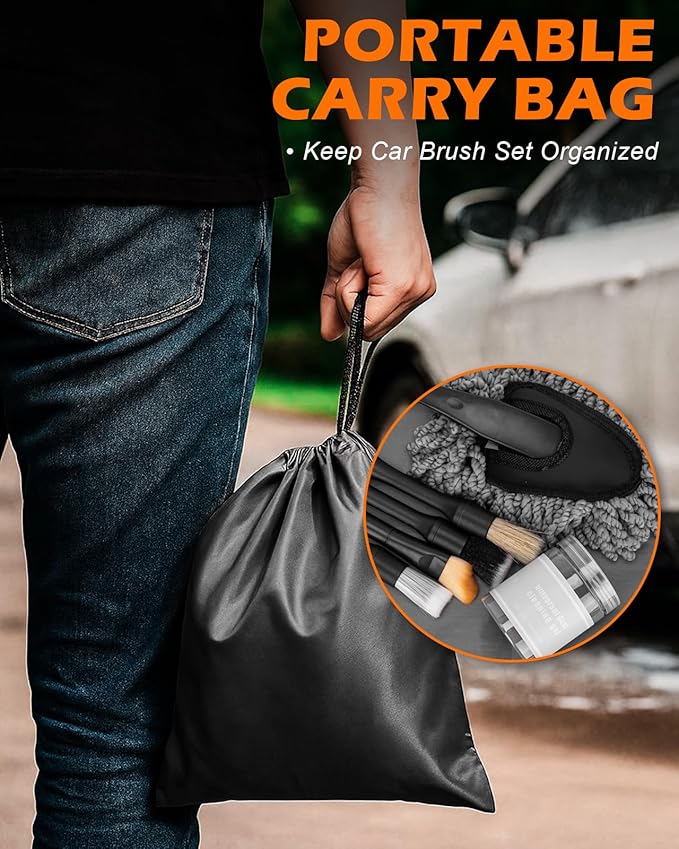 - Everyday Interior Care: Portable drawstring storage bag keeps the brush kit neatly together. This car gadget set is a great gift for new drivers and car fans.