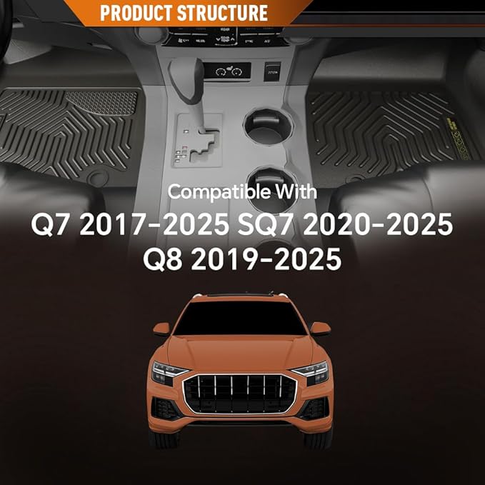 - Vehicle Compatibility - Floor Mats Compatible with Audi Q7 2017-2025; Compatible with Audi SQ7 2020-2025; Compatible with Audi Q8 2019-2025