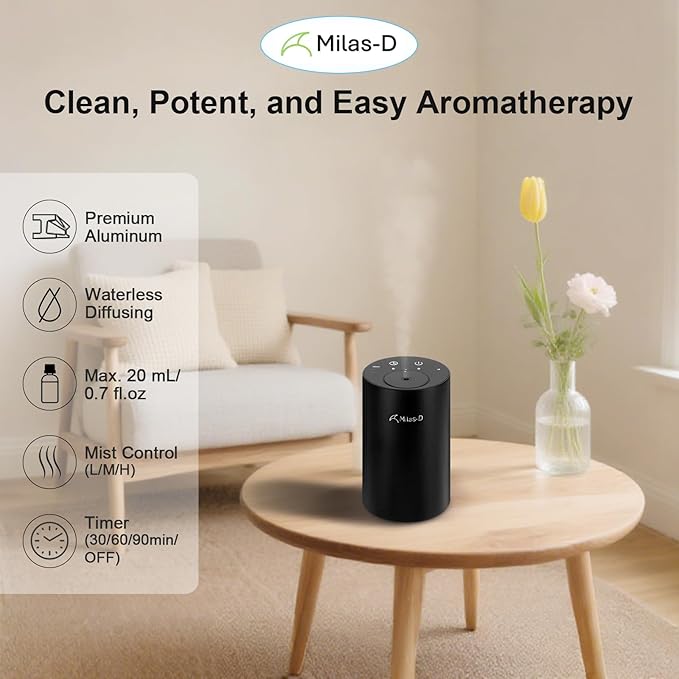 - 【Luxury You Can Feel, Convenience You’ll Love】 Built from premium anodized aluminum and finished in curated, on-trend colors, this diffuser elevates any tabletop. Our detachable nozzle makes bottle swaps and refills quick and tidy, and it fits most 5/10/15/20 mL essential-oil bottles for effortless flexibility.