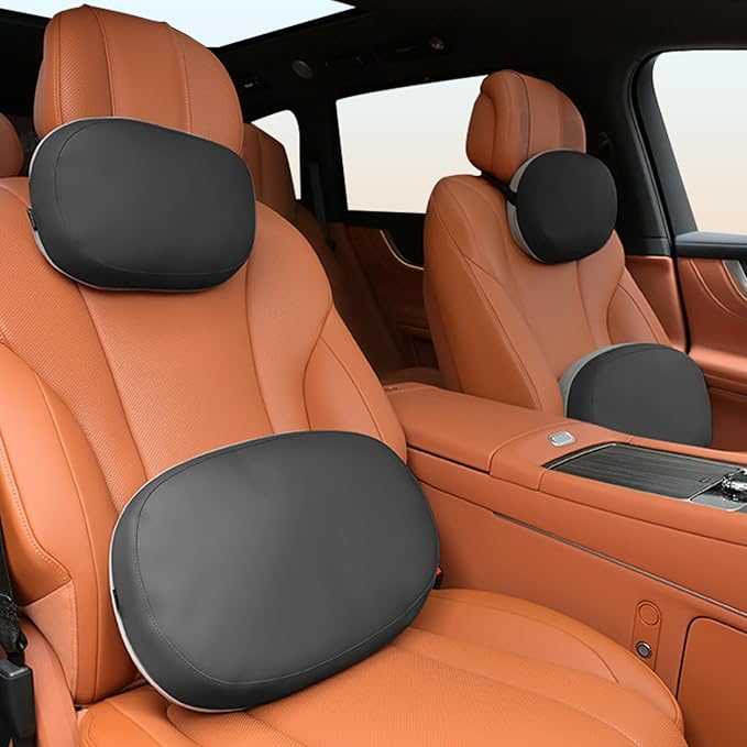 - 【Premium Material】Featuring breathable suede for cloud-soft smoothness, paired with fresh, odor-free and easy cleaning leather that prevents sticky sweat buildup—keeping your neck cool and dry in summer. The supportive cotton filling delivers plush-yet-firm support to cradle your head, neck, and lower back, reducing pressure points for fatigue-free long drives.