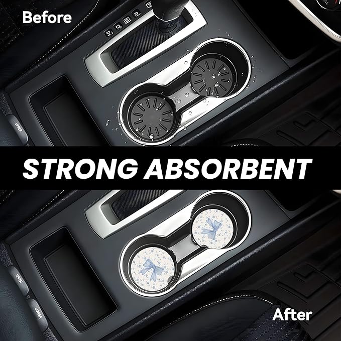 - Superior Absorption to Keep Holders Dry: Crafted from high-quality absorbent ceramic, these coasters quickly soak up spills, drips, and condensation, keeping your cup holders clean, dry, and free from sticky messes