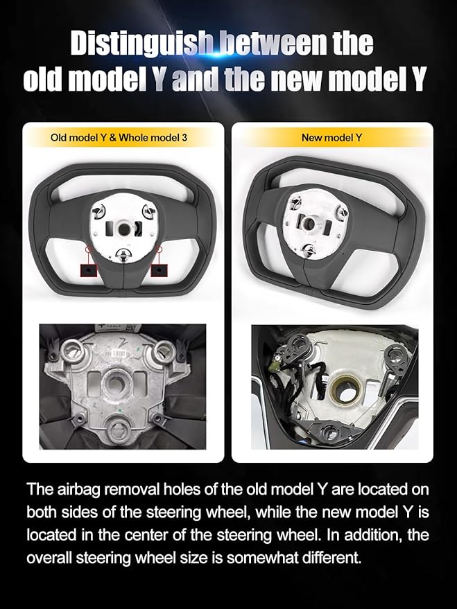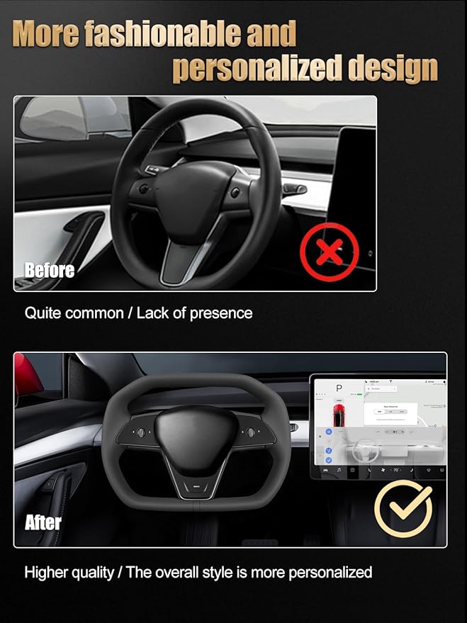 - Fitment — for Tesla Model 3 2017–2023, for Model Y 2020–2024 Factory-matched 1:1 fitment for a clean swap. Keeps stock mounting points and button positions; shape upgraded to a Cyber truck-style yoke with a Black center stripe.