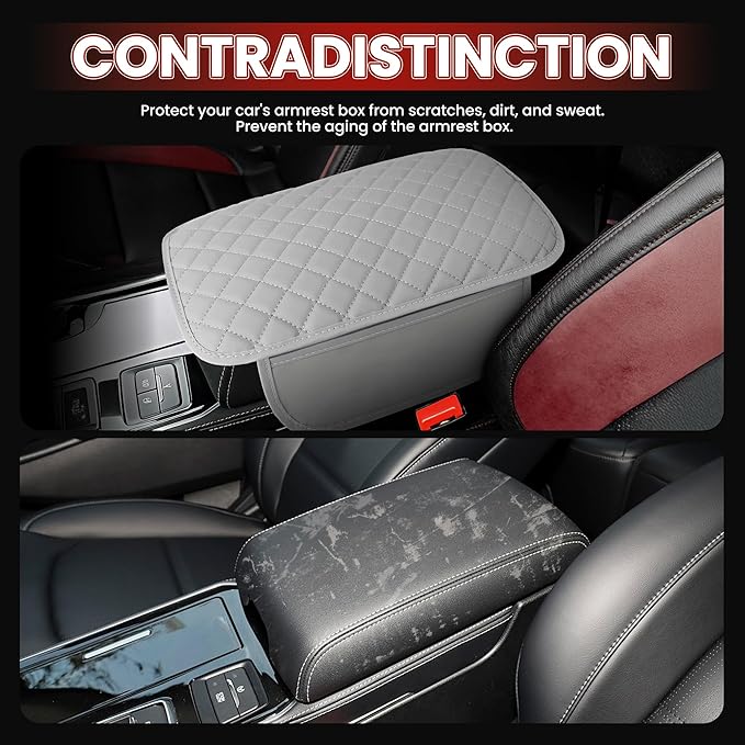 - Say Goodbye to Elbow Pain –Our car armrest cover crafted from premium PU leather with thick, plush padding.The extended version covers 10% more area than the standard version, effectively supporting the entire arm and relieving pressure on the elbow and wrist,our center console cover delivers ultra-soft, skin-friendly support to relieve elbow fatigue during long drives. So you won't feel tired even after sitting for long periods of time.