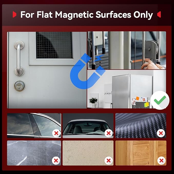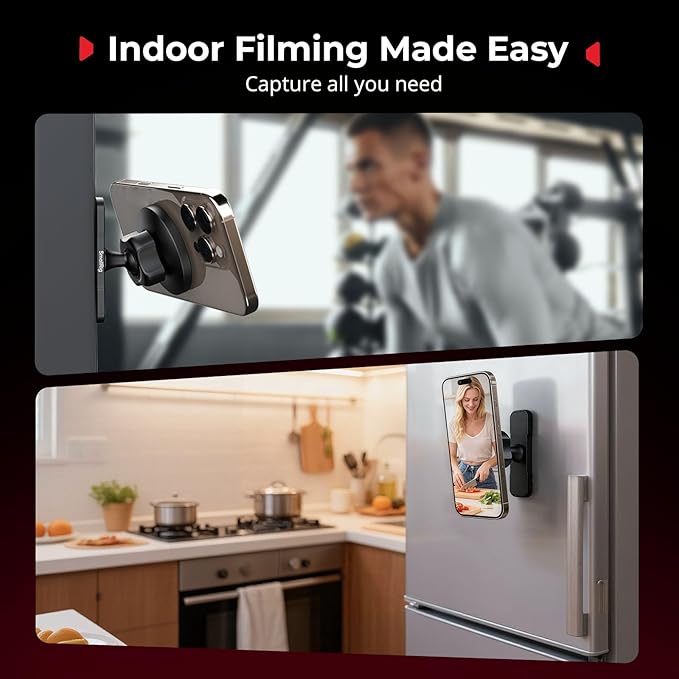 - Double-Sided Magnetic Design: This phone mount 5460 features a double-sided magnetic design for quick installation and removal. Six built-in N54 magnets in the base securely attach to magnetic surfaces, such as iron doors, iron kitchen utensils, and gym equipment, enhancing shooting effects. (Note: Only for use on flat iron or other magnetic surfaces! If you're only interested in flat glass surfaces, we recommend purchasing the 3566 or 4193.)