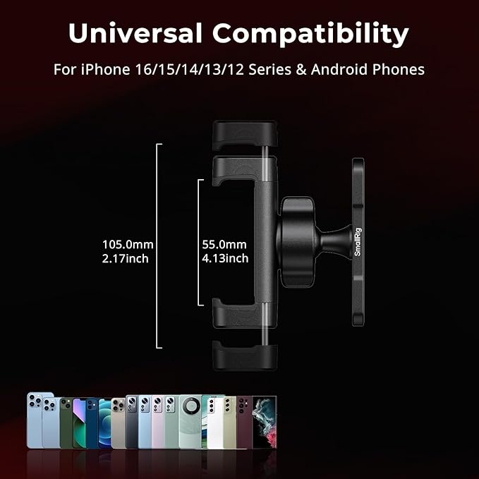 - Universal Compatibility: The universal phone holder accommodates smartphones with widths of 55–105 mm (2.2–4.1") and thicknesses of less than 15 mm (0.6"), supporting phone models for iPhone 17/16/15/14/13/12 series and other Android models.